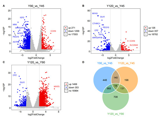 - Shi, B.; Shi, X.; Zuo, Z.; Zhao, S.; Zhao, Z.; Wang, J.; Zhou, H.; Luo, Y.; Hu, J.; Hickford, J.G.H. Identification of differentially expressed genes at different post-natal development stages of longissimus dorsi muscle in Tianzhu white yak. Gene 2022, 823, 146356. [Google Scholar] [CrossRef] [PubMed]