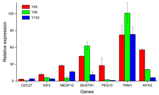 - Li, D.; Pan, Z.; Zhang, K.; Yu, M.; Yu, D.; Lu, Y.; Wang, J.; Zhang, J.; Zhang, K.; Du, W. Identification of the Differentially Expressed Genes of Muscle Growth and Intramuscular Fat Metabolism in the Development Stage of Yellow Broilers. Genes 2020, 11, 244. [Google Scholar] [CrossRef]