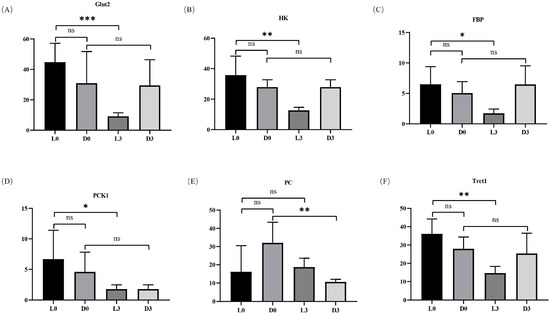 3.3. The Glycolysis Process Showed Different Responses to Pathogen Infection in Hemocytes between V. parahaemolyticus-Resistant and -Susceptible Shrimp