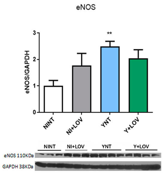 Our previous studies showed endothelial dysfunction [17]. Here, we investigate the levels of the enzyme endothelial nitric oxide synthase (eNOS), responsible for the production of nitric oxide (NO) in blood vessels and is involved in the regulation of vascular function [28].
