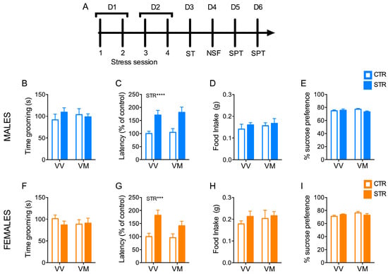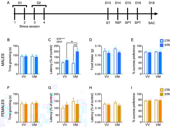 - Baugher, B.J.; Buckhaults, K.; Case, J.; Sullivan, A.; Huq, S.N.; Sachs, B.D. Sub-chronic stress induces similar behavioral effects in male and female mice despite sex-specific molecular adaptations in the nucleus accumbens. Behav. Brain Res. 2022, 425, 113811. [Google Scholar] [CrossRef]
