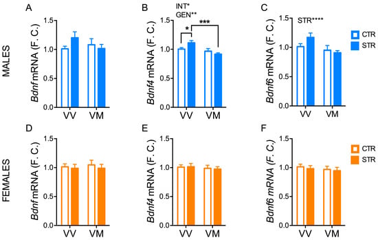 3.4. Subchronic Forced Swimming Stress Induced a Long-Term Change of BDNF Exons in the Hippocampus in a Sex- and Genotype-Depending Manner