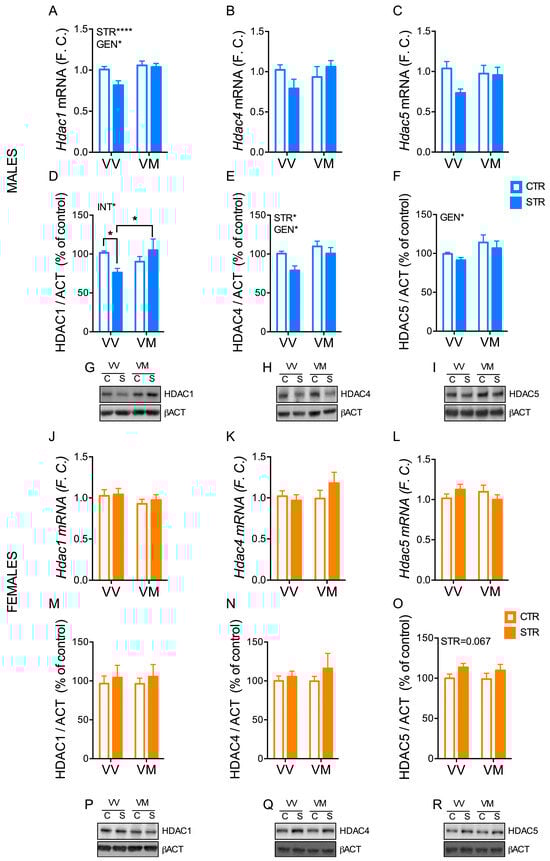 3.5. Subchronic Forced Swimming Stress Induced a Long-Term Change of HDACs in the Hippocampus in a Sex- and Genotype-Depending Manner