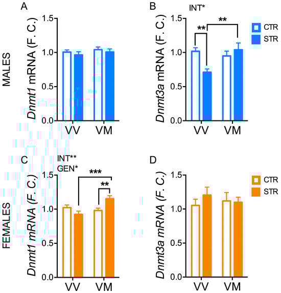 3.6. Subchronic Forced Swimming Stress Induced a Long-Term Change of Dnmt in the Hippocampus in a Sex- and Genotype-Depending Manner