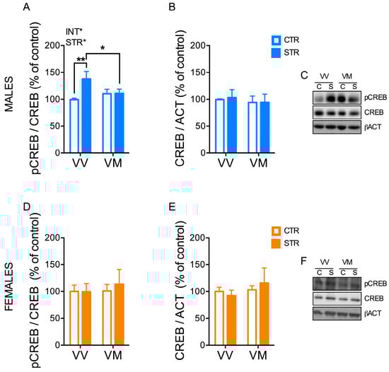 3.7. Subchronic Forced Swimming Stress Induced a Long-Term Change of CREB Phosphorylation in the Hippocampus in a Sex- and Genotype-Depending Manner