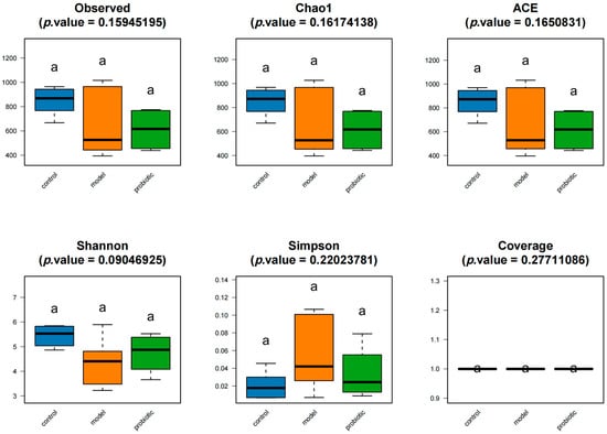 3.1.1. Alpha Diversity Analysis of Rabbit Intestinal Flora
