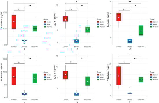 3.2.1. The Probiotics Significantly Enhanced the Expression of Tight Junction Proteins in the Intestinal Barrier of Rabbits
