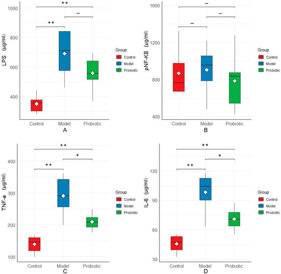 3.3.1. The Probiotics Reduced Rabbit Serum Inflammatory Factors