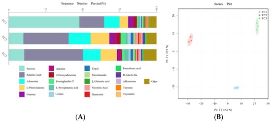 Composition (A) and change (B) of metabolites in rhizosphere soil during FC cultivation.