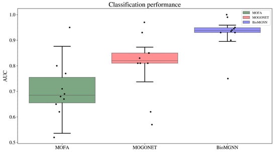 We benchmarked the performance of our method against two established multi-omics biomarker discovery tools: MOFA (Multi-Omics Factor Analysis) [50] and MOGONET (Multi-Omics Graph cOnvolutional NETworks) [51].