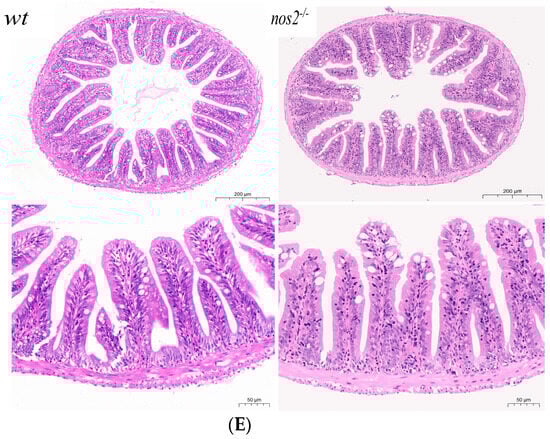 3.3. Histological Analysis of iNOS-Deficient Zebrafish Intestinal Tissue
