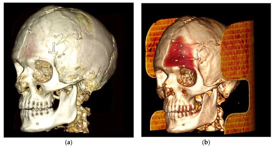 - Alkhaibary, A.; Alharbi, A.; Alnefaie, N.; Oqalaa Almubarak, A.; Aloraidi, A.; Khairy, S. Cranioplasty: A Comprehensive Review of the History, Materials, Surgical Aspects, and Complications. World Neurosurg. 2020, 139, 45–452. [Google Scholar] [CrossRef] [PubMed]