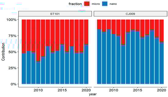 With regard to the relative proportion of phytoplankton size fractions (microphytoplankton >20 µm and nanoplankton <20 µm) for representative stations, it was evident that the nanophytoplankton prevailed at the offshore station CJ009 throughout the study period (Figure 12), whereas it was surpassed by the microphytoplankton at coastal station ST101.