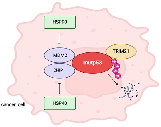 Ubiquitin ligases interacting with mutant p53 (mutp53) and heat shock proteins (HSPs) can prevent ubiquitination and proteasomal degradation of mutp53.