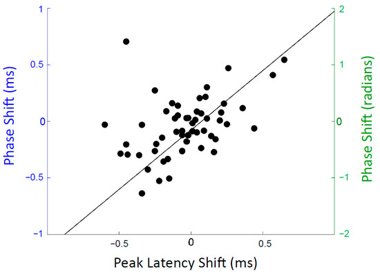 To make comparisons between the two timing measures, phase shifts were converted to latency shifts using the following formula:
