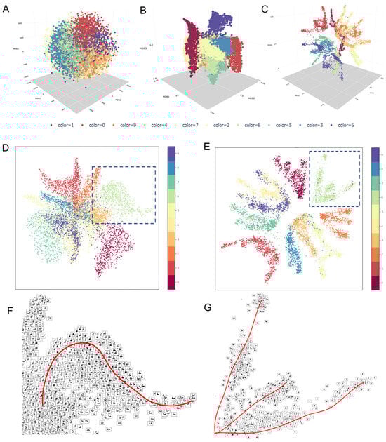 - Moon, K.R.; van Dijk, D.; Wang, Z.; Gigante, S.; Burkhardt, D.B.; Chen, W.S.; Yim, K.; van den Elzen, A.; Hirn, M.J.; Coifman, R.R.; et al. Visualizing Structure and Transitions in High-Dimensional Biological Data. Nat. Biotechnol. 2019, 37, 1482–1492. [Google Scholar] [CrossRef] [PubMed]