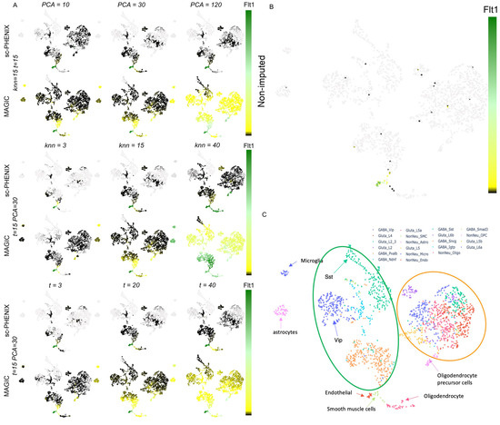 Opportunities with sc-PHENIX: In sc-PHENIX, we can recover all genes and create a PCA-UMAP initialization from the most variable genes, allowing it to receive these inputs. In the MAGIC article, van Dijk et al. utilized all genes to recover expression for the EMT dataset [5]. This approach allows us to evaluate gene–gene interactions, dropout events, and filtration steps, such as filtering for the most variable genes, which would typically mask these interactions (https://github.com/dpeerlab/magic/blob/published/notebooks/Magic_single_cell_RNAseq.ipynb, accessed on 4 June 2024).