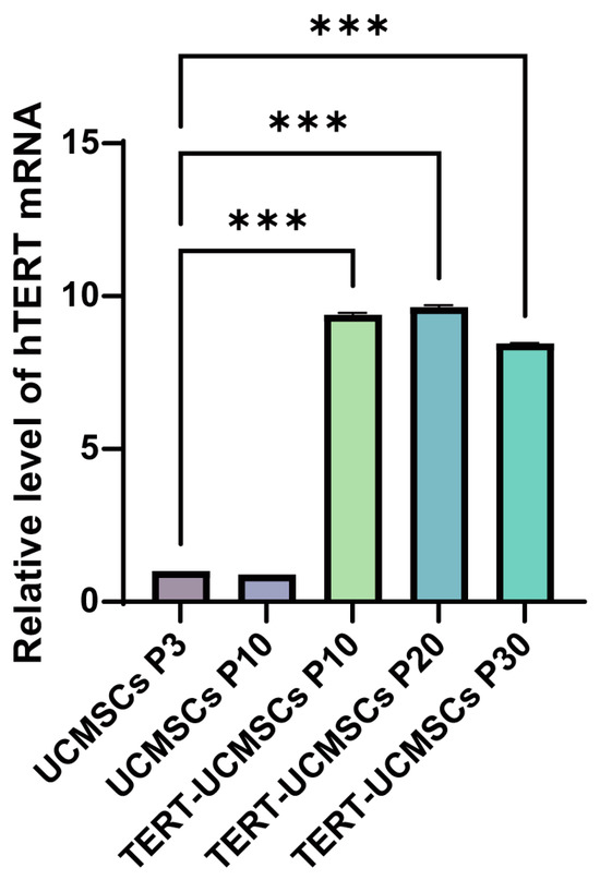 - Wang, L.; Song, K.; Qu, X.; Wang, H.; Zhu, H.; Xu, X.; Zhang, M.; Tang, Y.; Yang, X. hTERT Gene Immortalized Human Adipose-Derived Stem Cells and Its Multiple Differentiations: A Preliminary Investigation. Appl. Biochem. Biotechnol. 2013, 169, 1546–1556. [Google Scholar] [CrossRef] [PubMed]