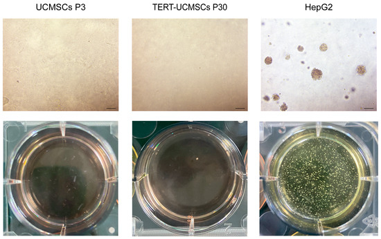 - Liang, X.-J.; Chen, X.-J.; Yang, D.-H.; Huang, S.-M.; Sun, G.-D.; Chen, Y.-P. Differentiation of Human Umbilical Cord Mesenchymal Stem Cells into Hepatocyte-like Cells by hTERT Gene Transfection In Vitro. Cell Biol. Int. 2012, 36, 215–221. [Google Scholar] [CrossRef] [PubMed]