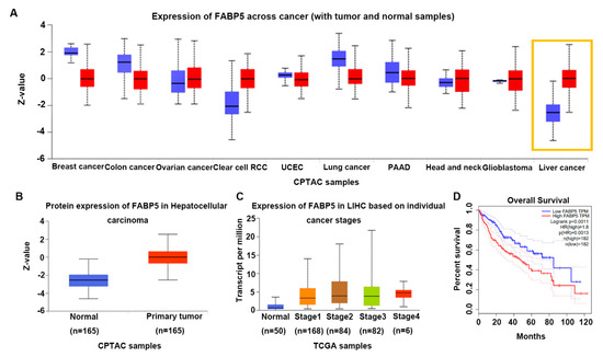 Data relating to lncRNA495810 expression in human HCC tissues; the correlation of lncRNA495810 expression and disease-free survival and overall survival; the correlation of lncRNA495810 expression and the pathological stage of HCC, the relationship between FABP5 expression and the stage of LIHC; and the relationship between FABP5 expression and the overall survival of HCC patients are all from the TCGA database. The level of FABP5 protein in ten cancers and the expression of FABP5 protein in HCC were obtained from the CPATC database.