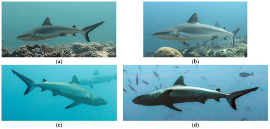 Off Nosy Be in Madagascar, in the Mozambique Channel, we observed a grey reef shark aggregation site around the pinnacle of a coral reef at about 15–30 m depth. It is of primary importance to identify each specimen in order to monitor the population present in the aggregation site. Researchers are seeking to develop non- or minimally invasive methods to investigate elasmobranch biology and ecology [20,21], in particular for studies on threatened and protected species [11]. Photo-identification (photo-ID) offers a valid alternative to conventional tagging methods where its assumptions and practical constraints are met, in some cases improving the results of mark–recapture studies [22].