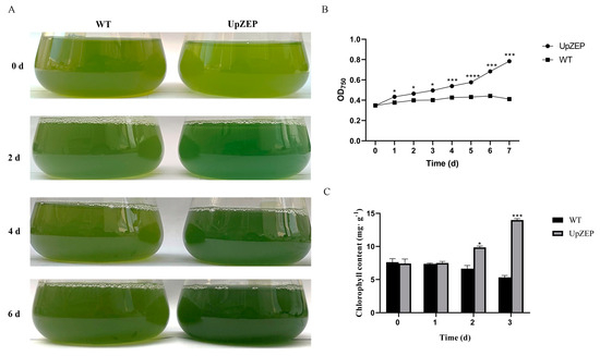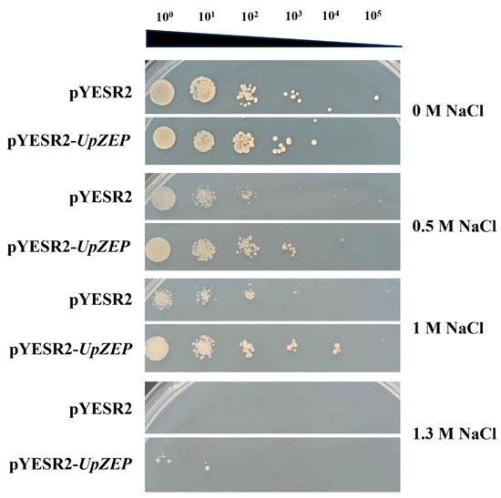 3.3. Expression Levels of the UpZEP Gene under High-Salt Stress