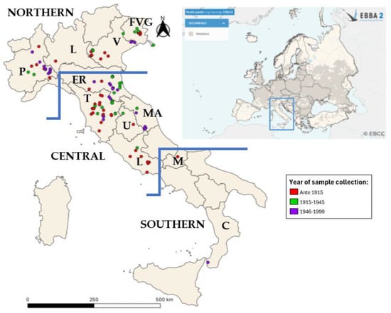 https://eur-lex.europa.eu/LexUriServ/LexUriServ.do?uri=CONSLEG:1979L0409:20070101:IT:PDF accessed on 1 August 2024)), was widespread over all peninsular elevations below 500 m asl, from alpine valleys to the Strait of Messina, and was never reported in Sicily, Sardinia and the smaller islands [