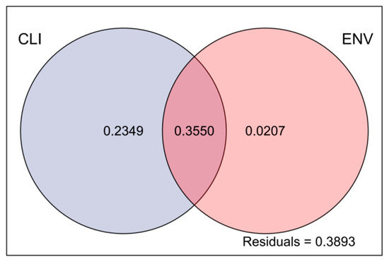 Analysis of the effects of climatic and environmental factors on phytoplankton communities. Abbreviations: CLI, climatic factors; ENV, environmental factors.