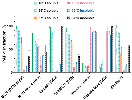 - Prasad, S.; Khadatare, P.B.; Roy, I. Effect of Chemical Chaperones in Improving the Solubility of Recombinant Proteins in Escherichia coli. Appl. Environ. Microbiol. 2011, 77, 4603–4609. [Google Scholar] [CrossRef]