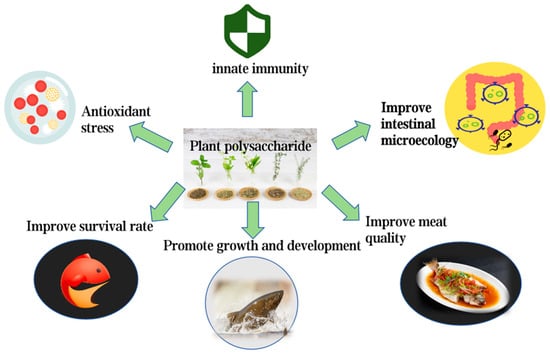 3.2.3. Applications of Plant Polysaccharides as Food Additives in Aquaculture