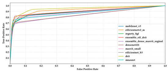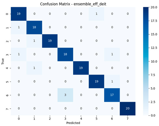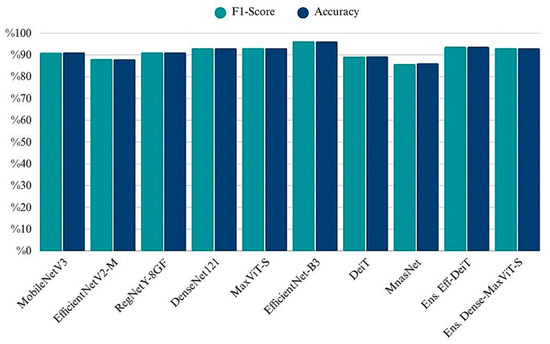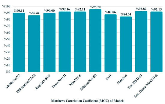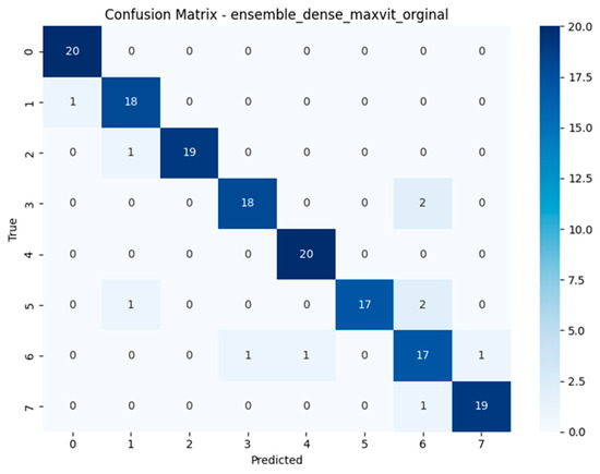 46]. Ensemble architectures EfficientNet-B3 + DeiT and DenseNet121 + MaxViT-S integrate complementary feature representations, enhancing decision robustness by fusing convolutional and transformer-based learning mechanisms [