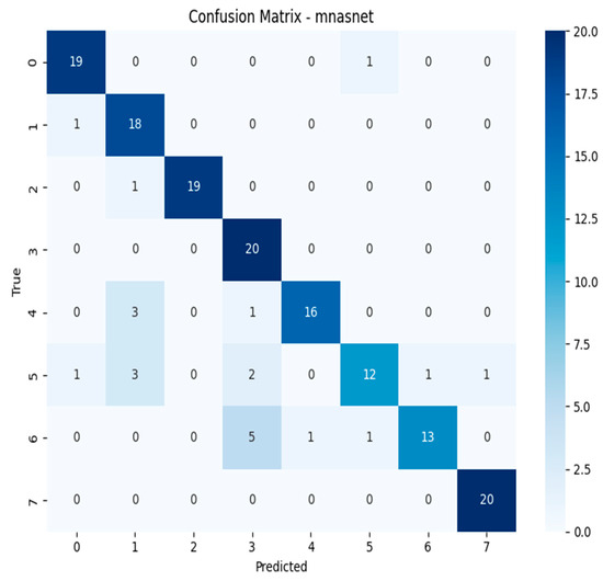 Figure 18 offer detailed insights into the class-wise performance of four representative models. The MnasNet model exhibits considerable confusion between
