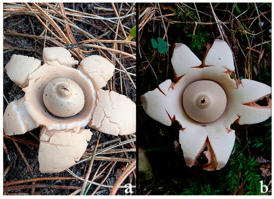 Astraeus, are ectomycorrhizal species found globally, primarily in tropical and temperate regions. Their fruiting bodies lack a stipe and possess a three-layered peridium, with the outer layer forming a star shape as it opens. The inner layer houses the gleba, which releases spores through a bellows-like mechanism. These fungi primarily inhabit land but also thrive on decaying organic matter, including wood, dung, and leaf litter [
