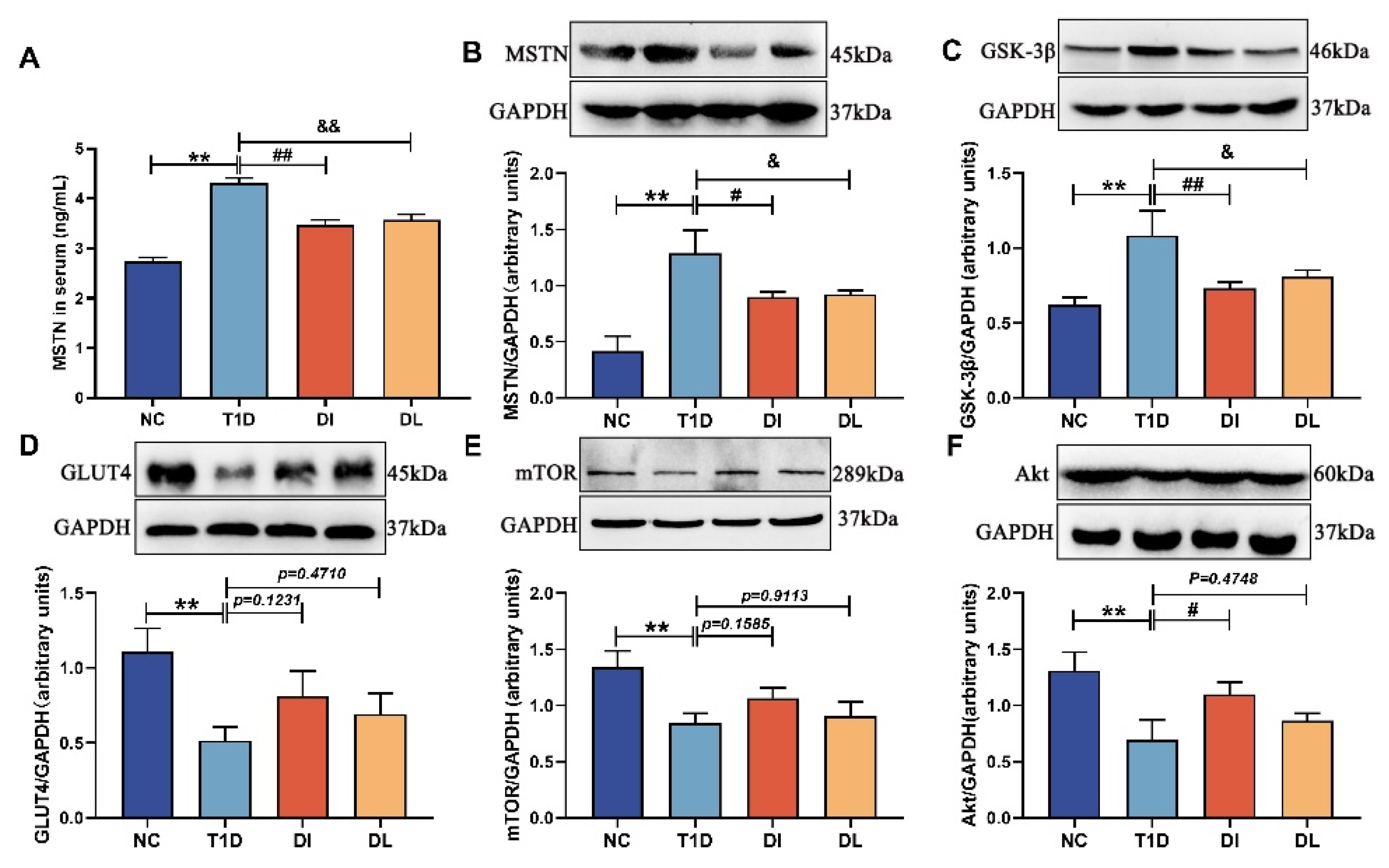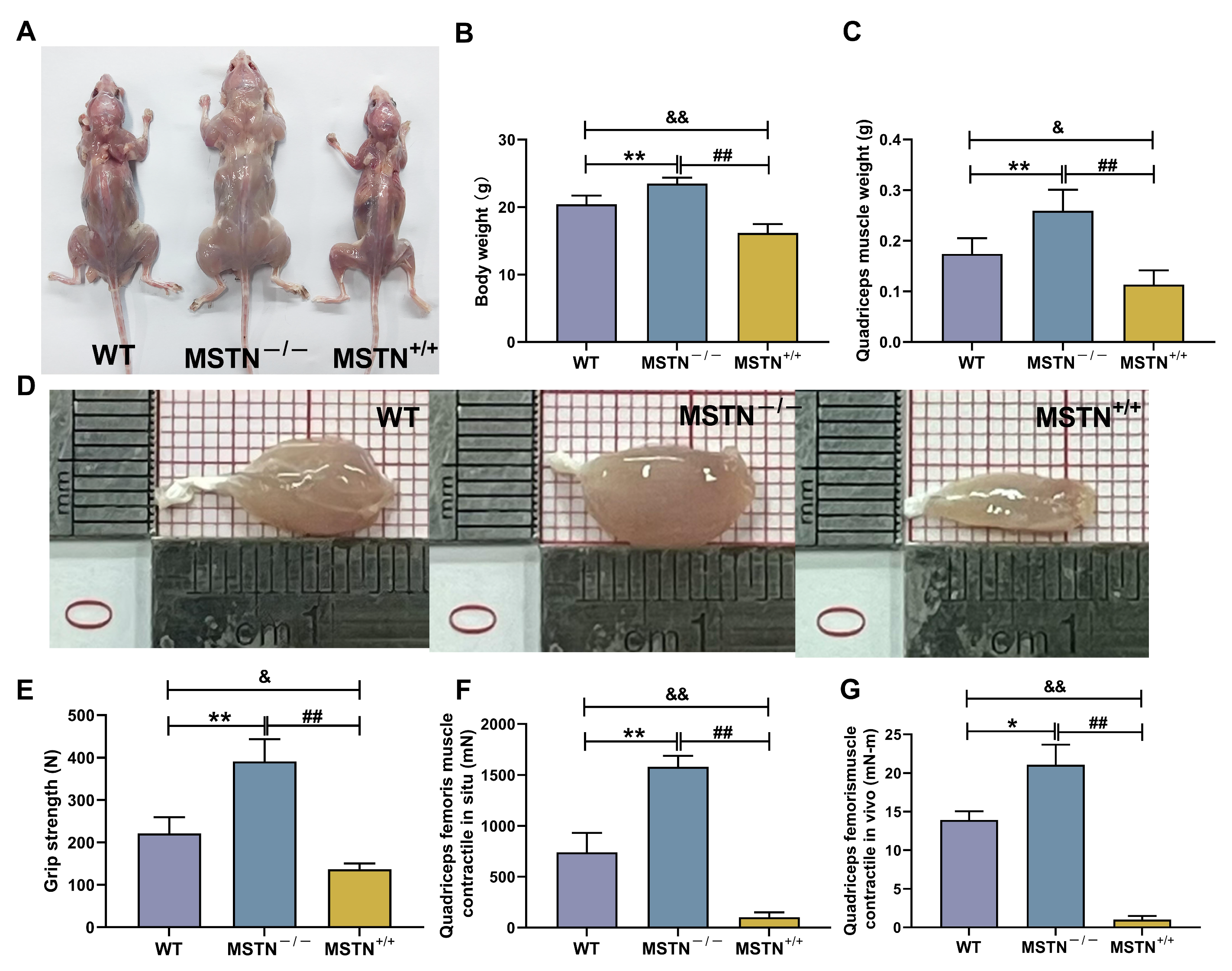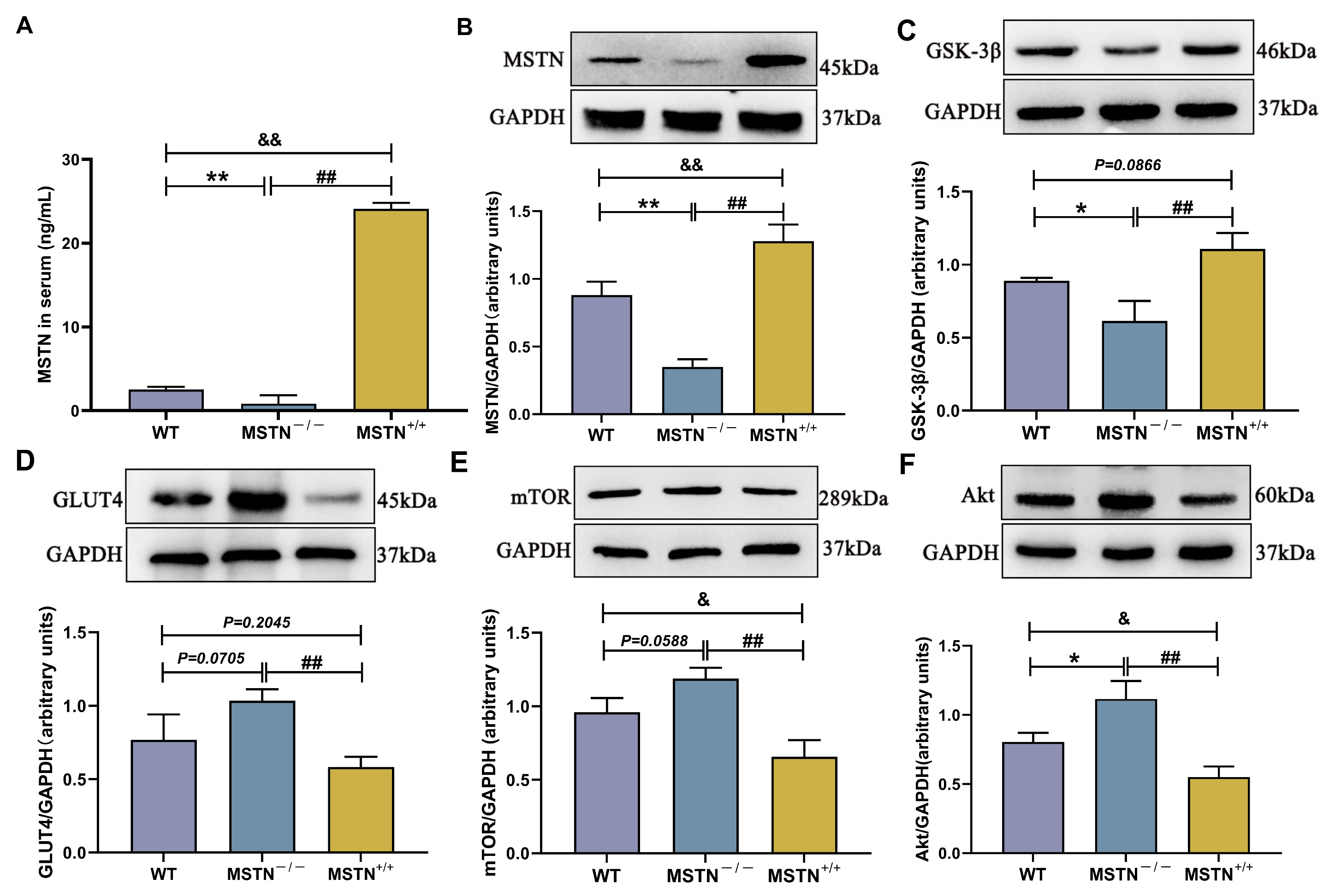 3.9. Protein Expression of MSTN−/− and MSTN+/+ Mice