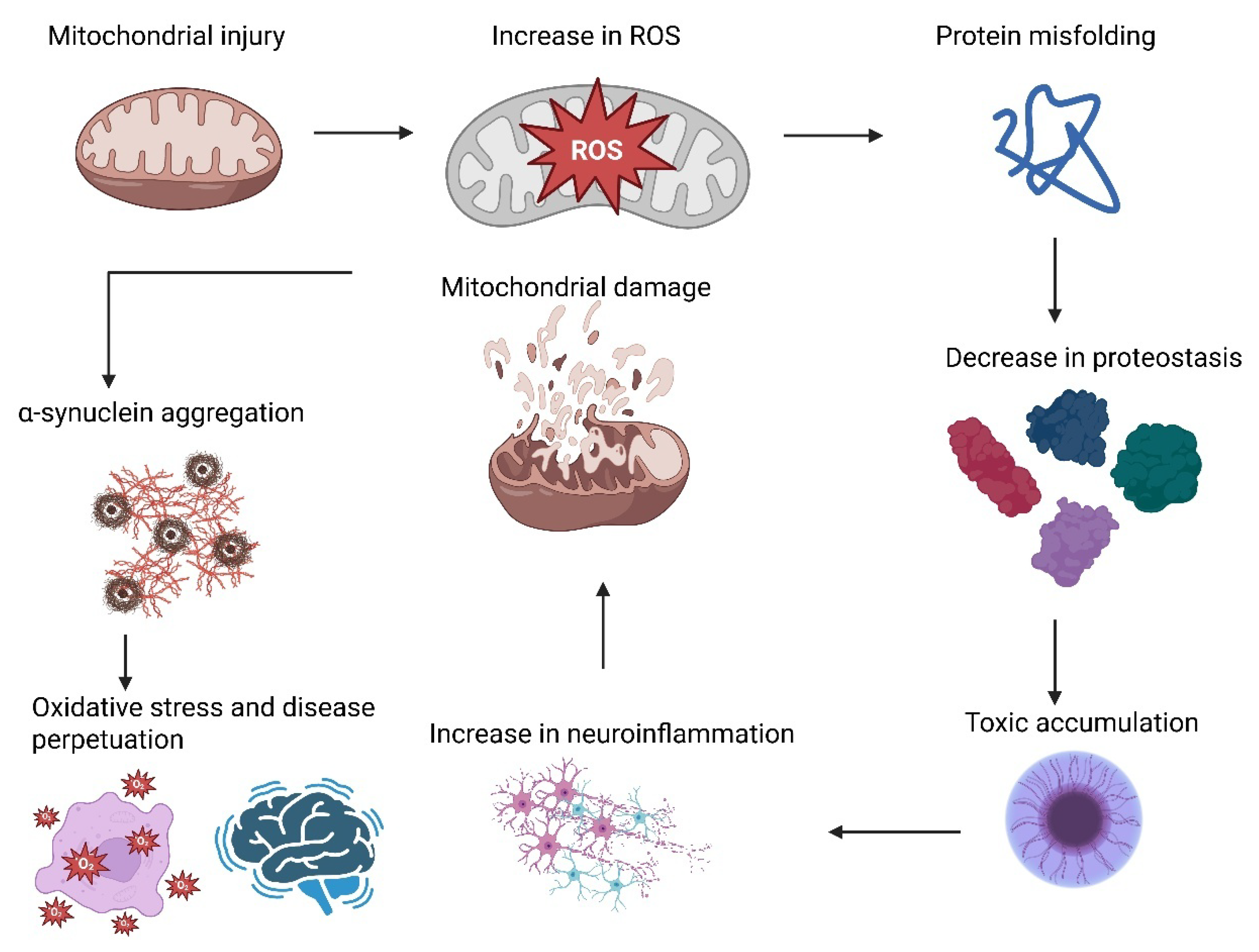- Huang, M.; Bargues-Carot, A.; Riaz, Z.; Wickham, H.; Zenitsky, G.; Jin, H.; Anantharam, V.; Kanthasamy, A.; Kanthasamy, A.G. Impact of Environmental Risk Factors on Mitochondrial Dysfunction, Neuroinflammation, Protein Misfolding, and Oxidative Stress in the Etiopathogenesis of Parkinson’s Disease. Int. J. Mol. Sci. 2022, 23, 10808. [Google Scholar] [CrossRef]