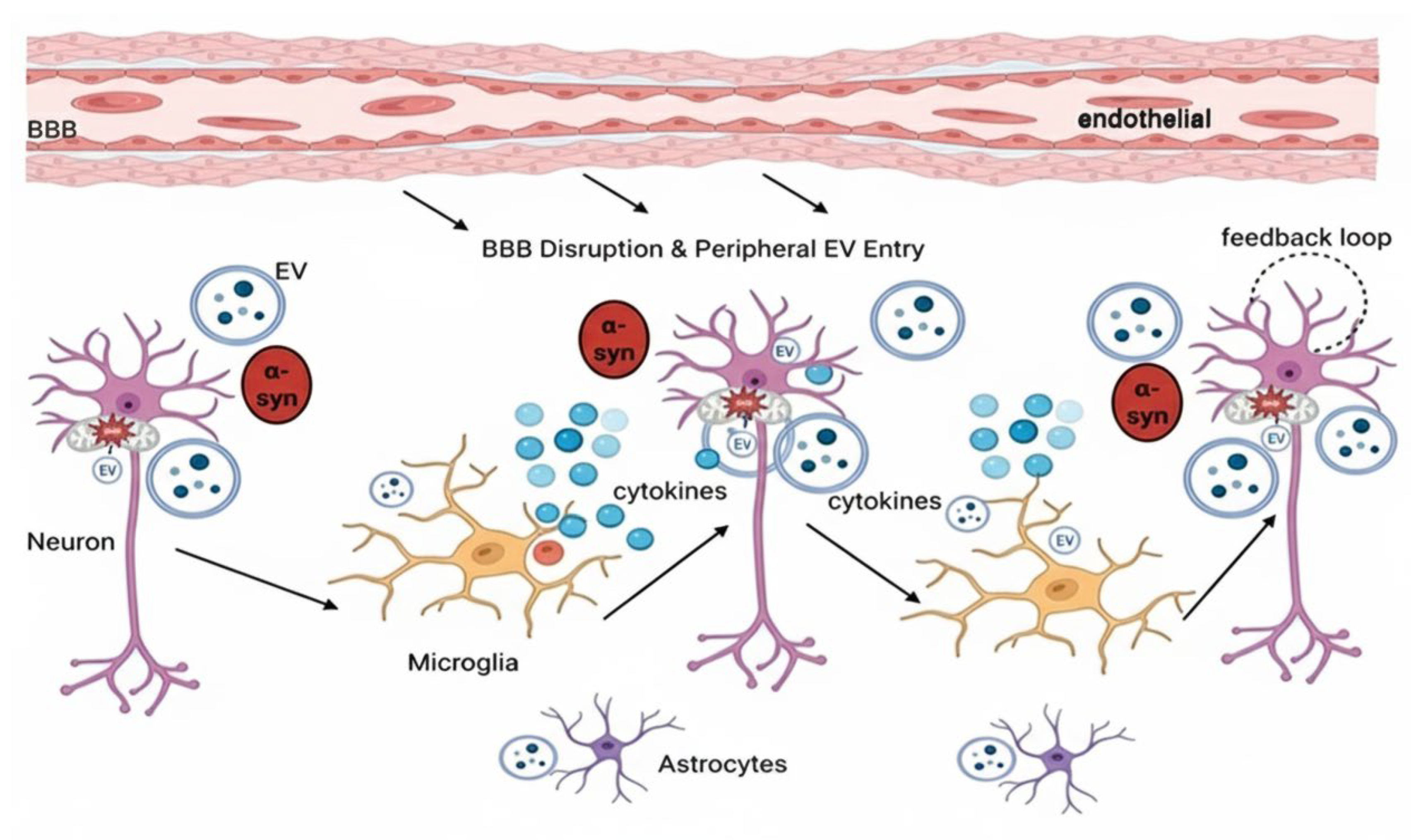 3. The Involvement of EV in PD Pathogenesis