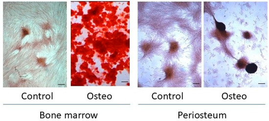 - Jaquiéry, C.; Schaeren, S.; Farhadi, J.; Mainil-Varlet, P.; Kunz, C.; Zeilhofer, H.F.; Heberer, M.; Martin, I. In vitro osteogenic differentiation and in vivo bone-forming capacity of human isogenic jaw periosteal cells and bone marrow stromal cells. Ann. Surg. 2005, 242, 859–868. [Google Scholar] [CrossRef]