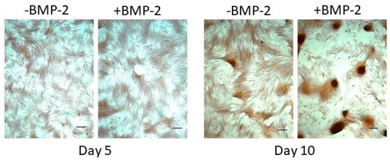 3.2.1. Differential Expression of BMP-2 in BM and PO Cell Cultures