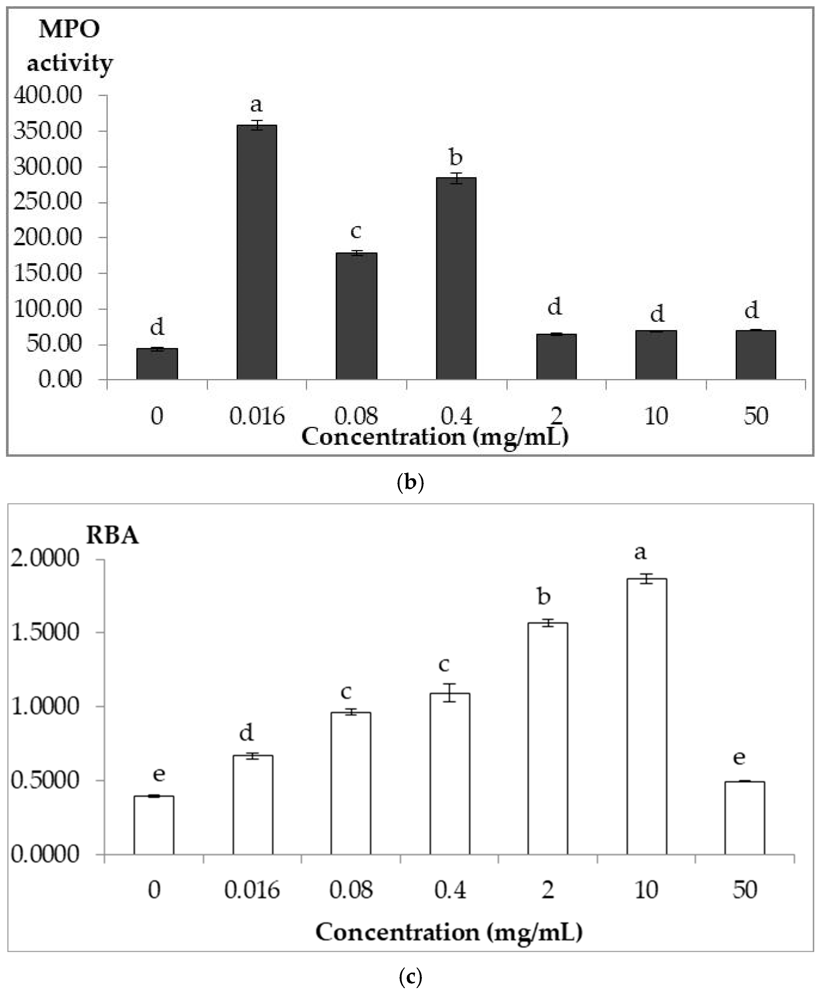 - Damascena, H.L.; Silveira, W.A.A.; Castro, M.S.; Fontes, W. Neutrophil Activated by the Famous and Potent PMA (Phorbol Myristate Acetate). Cells 2022, 11, 2889. [Google Scholar] [CrossRef]