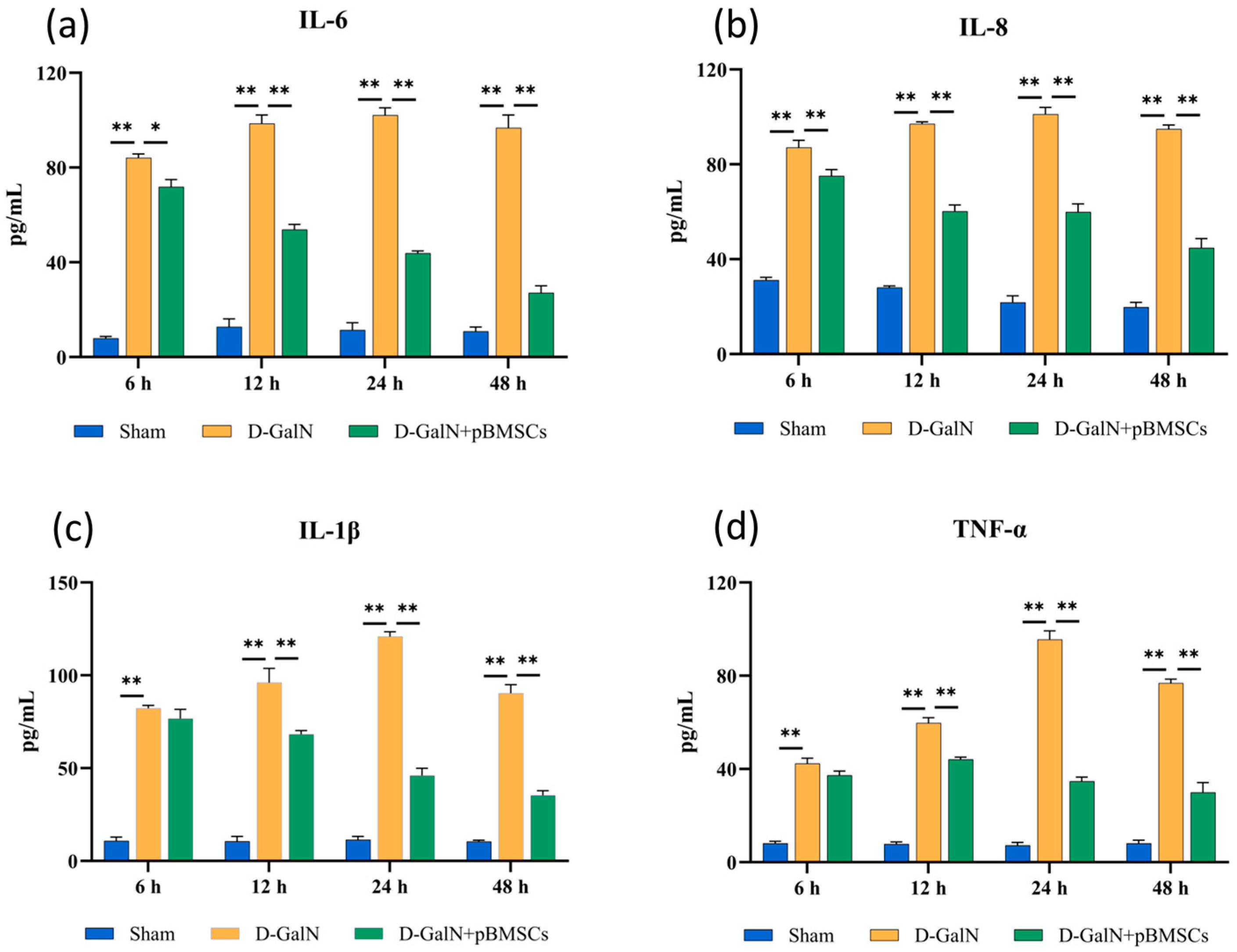3.5. pBMSC Transplantation Inhibits Proinflammatory Cytokine Release
