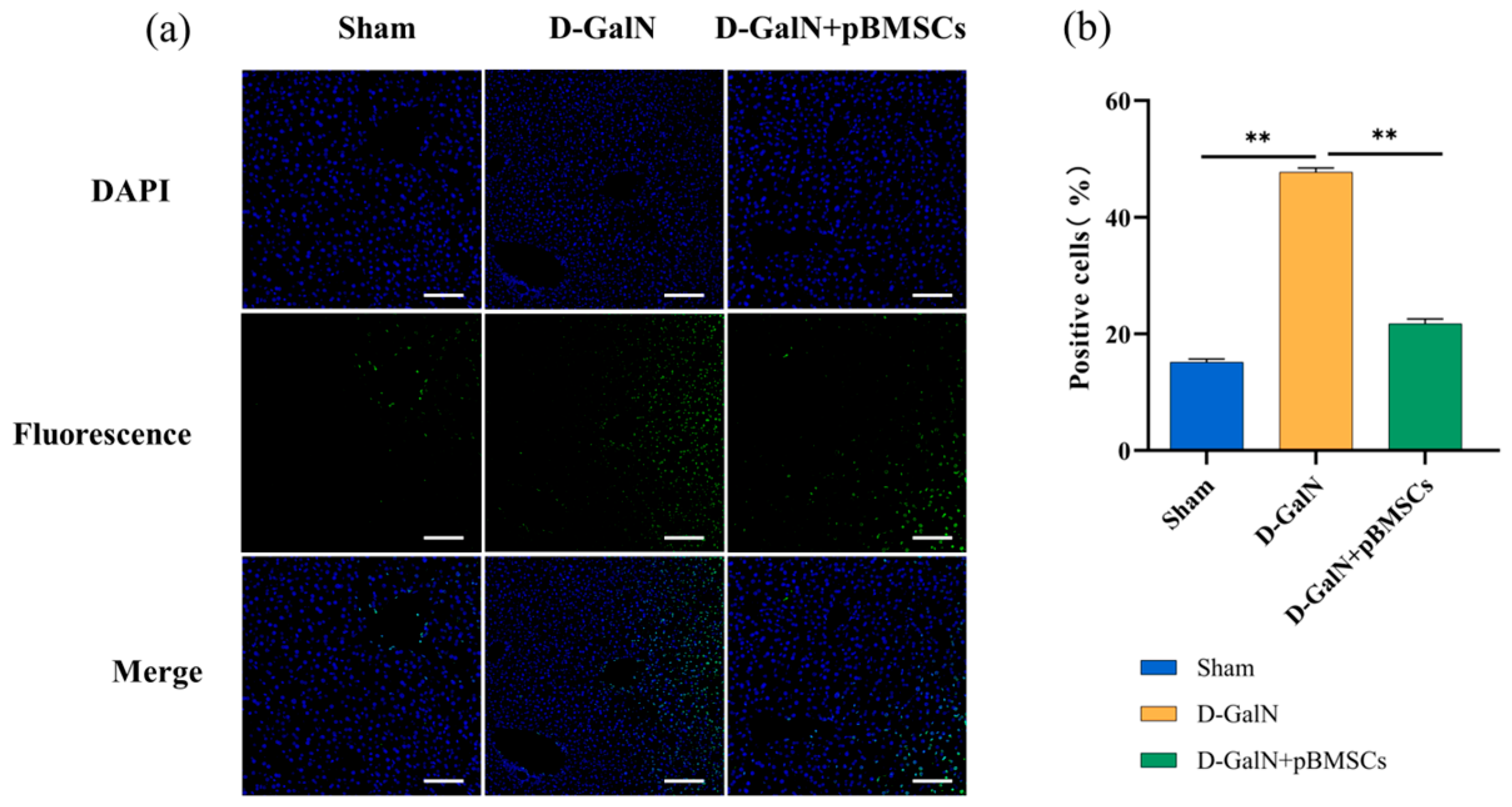 3.2. Liver-Targeted Homing and Improved Survival Rate of pBMSCs
