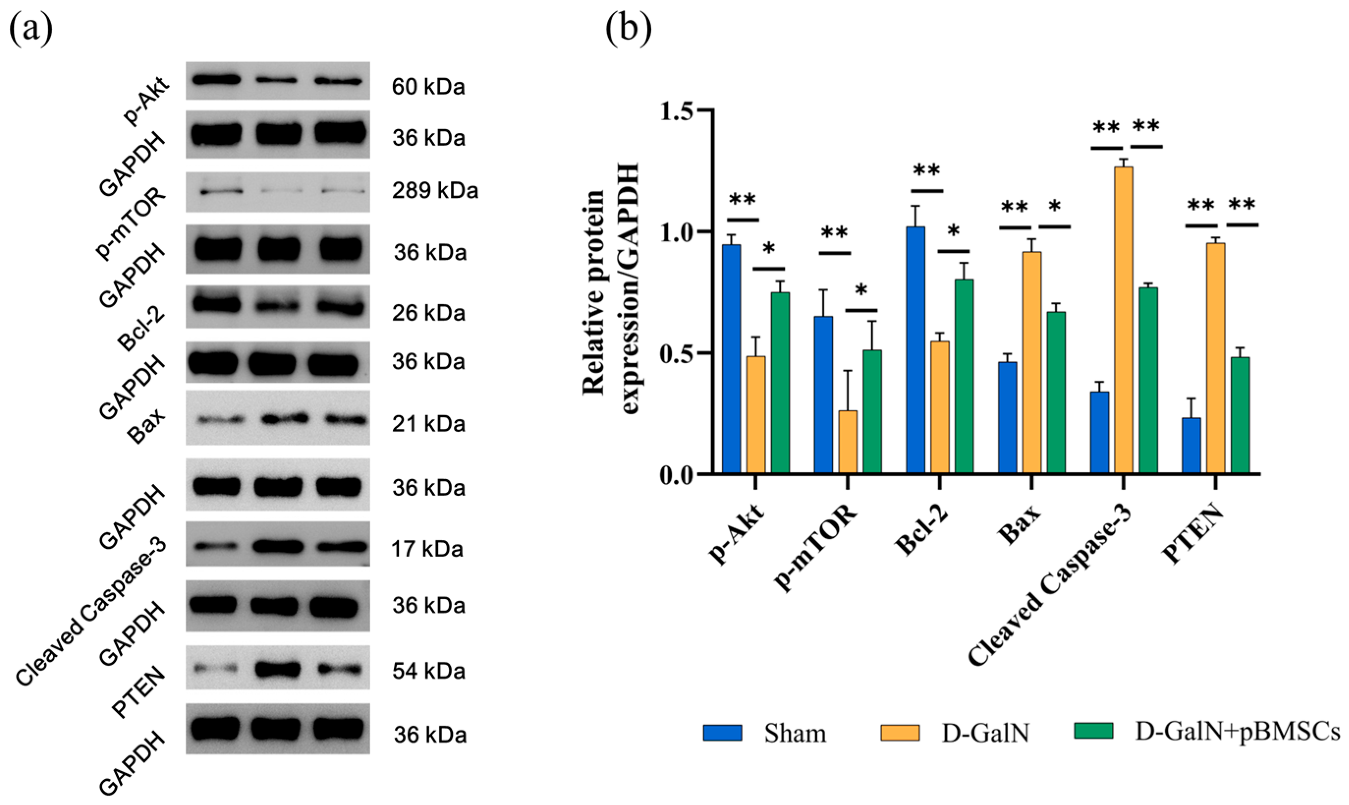 Chicago/Turabian StyleLi, Minjuan, Zhongfa Wang, Xingxing Yan, Yanchen Liu, Yunan He, Bianying Zhang, and Weijun Guan. 2025. "Luopan Mountain Pig Bone Marrow Mesenchymal Stem Cells Promote Liver Regeneration in D-Galactosamine-Induced Acute Liver Failure Rats by Regulating the PTEN-PI3K/Akt/mTOR Pathway" Biology 14, no. 10: 1363. https://doi.org/10.3390/biology14101363