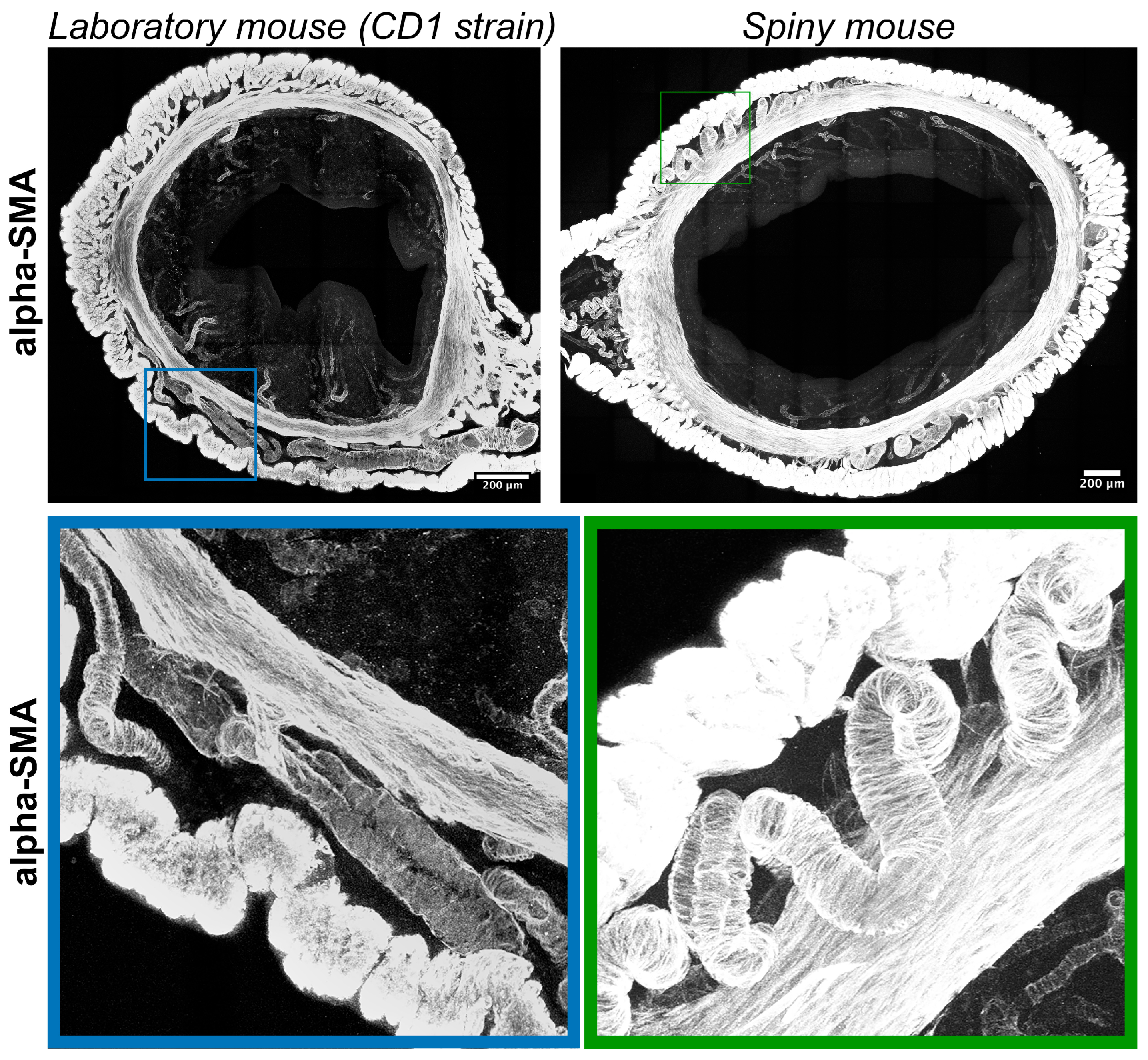 Figure 5). Interspecies differences in smooth-muscle cell-bearing structures (muscular layer, arteries and arterioles) and lymphatic vessels were less pronounced (