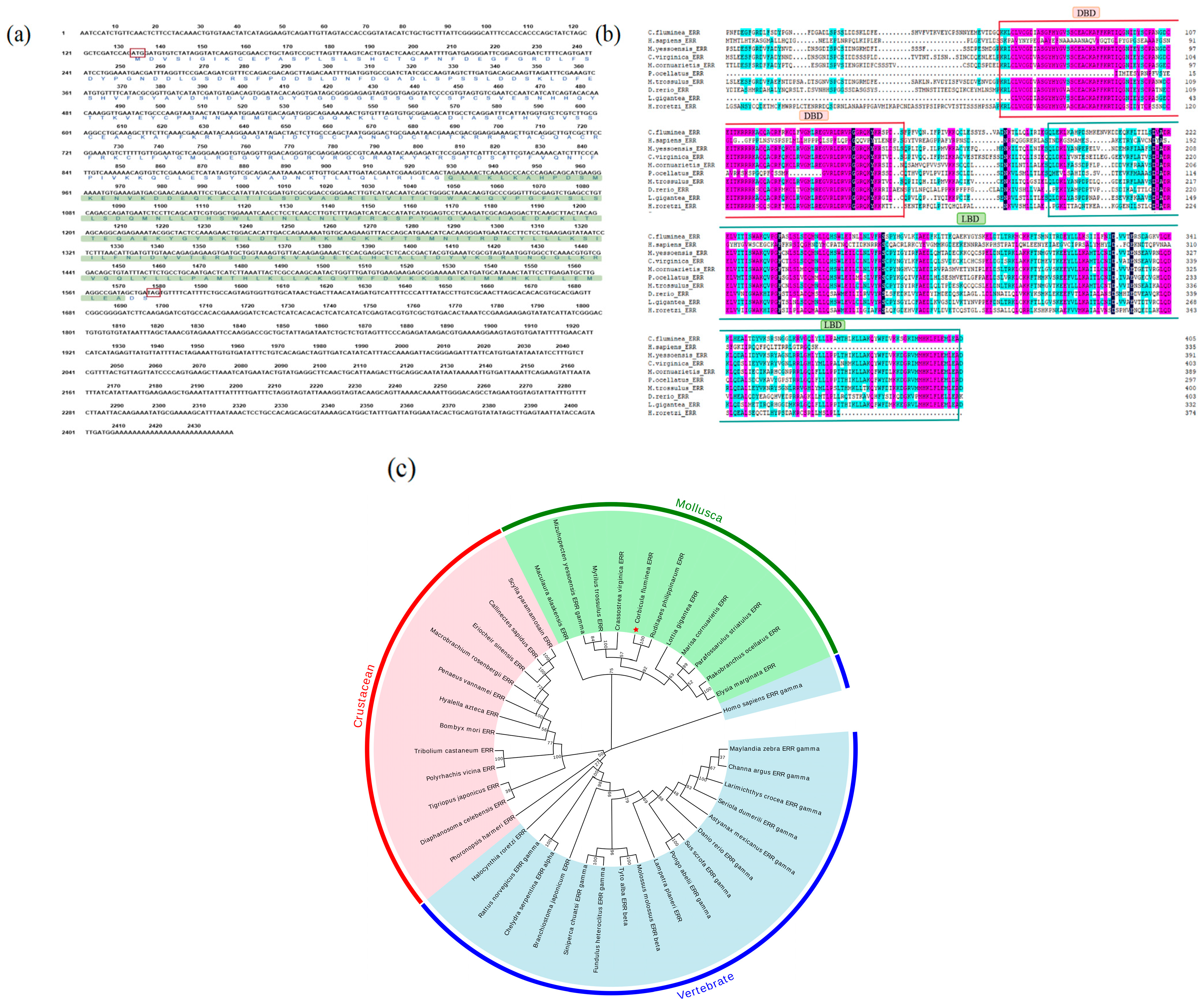 Chicago/Turabian StyleXu, Ruiyi, Weili Guo, Pengyu Zhang, and Chunnuan Zhang. 2025. "Molecular Cloning and Characterization of Estrogen-Related Receptor Gene in Corbicula fluminea: Expression Profiles in Response to Bisphenol A and Its Substitutes Exposure" Biology 14, no. 10: 1384. https://doi.org/10.3390/biology14101384