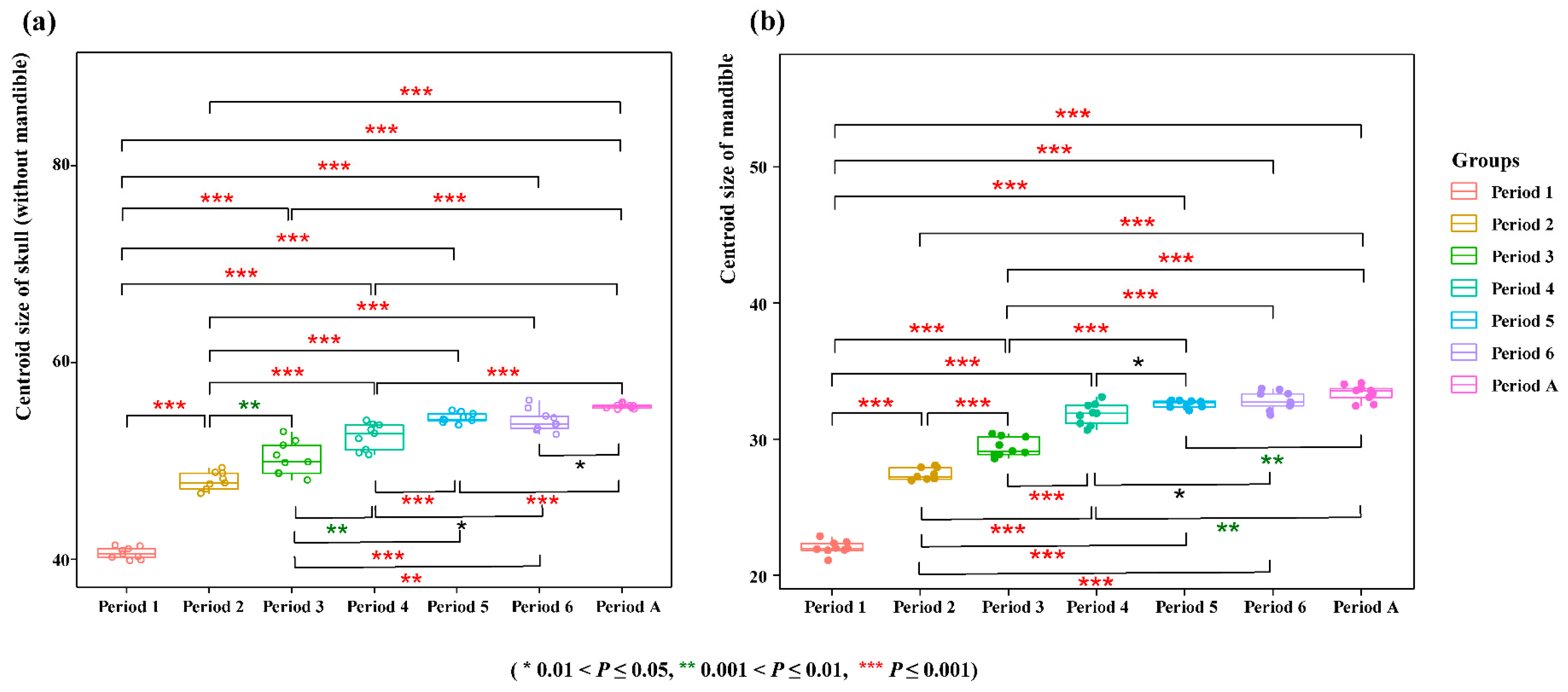 2.4. Comparison of the Skull Space Morphology of V. sinensis at Different Developmental Periods