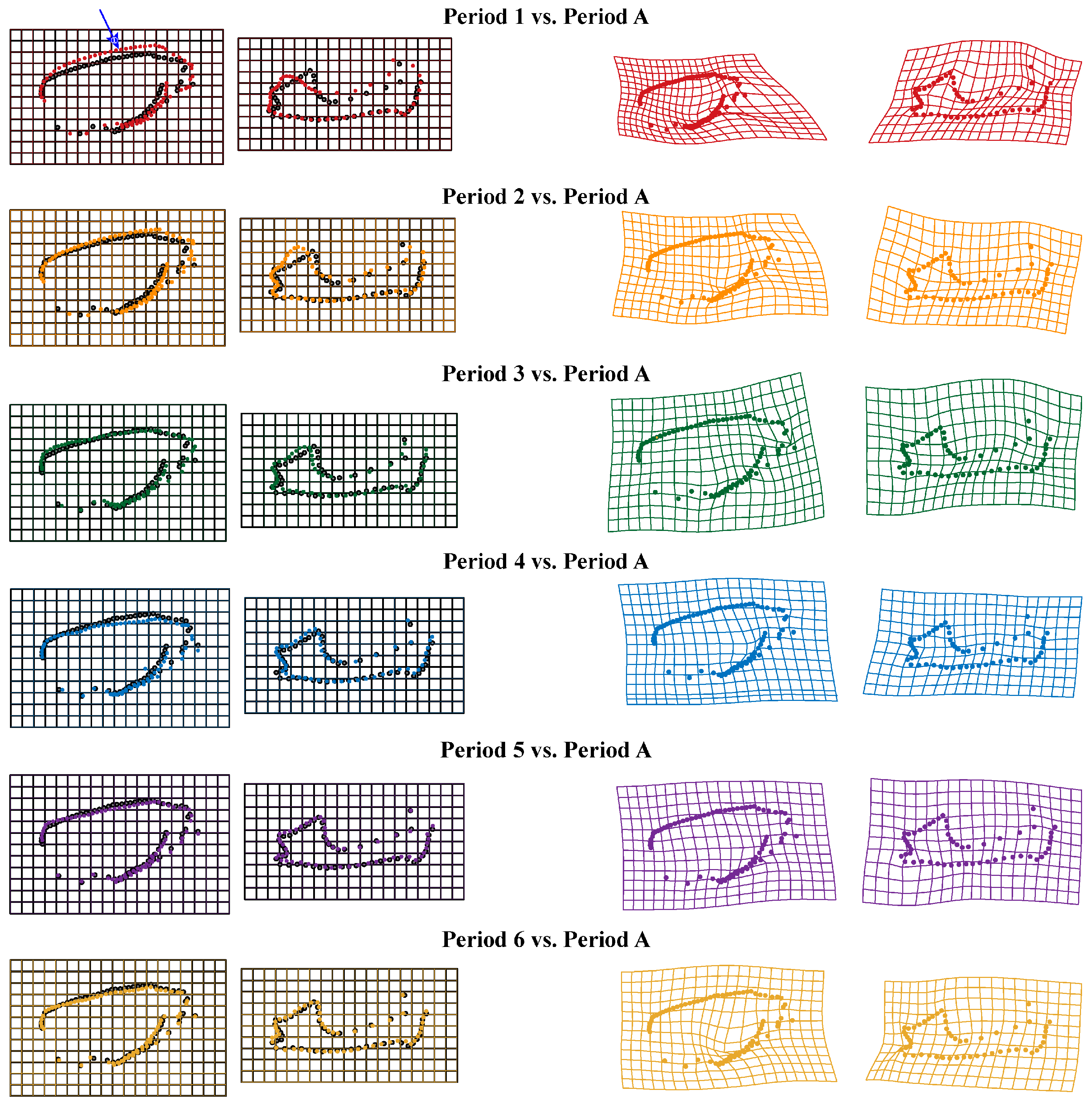 - Rohlf, F.J.; Slice, D. Extensions of the Procrustes method for the optimal superimposition of landmarks. Syst. Zool. 1990, 39, 40–59. [Google Scholar] [CrossRef]