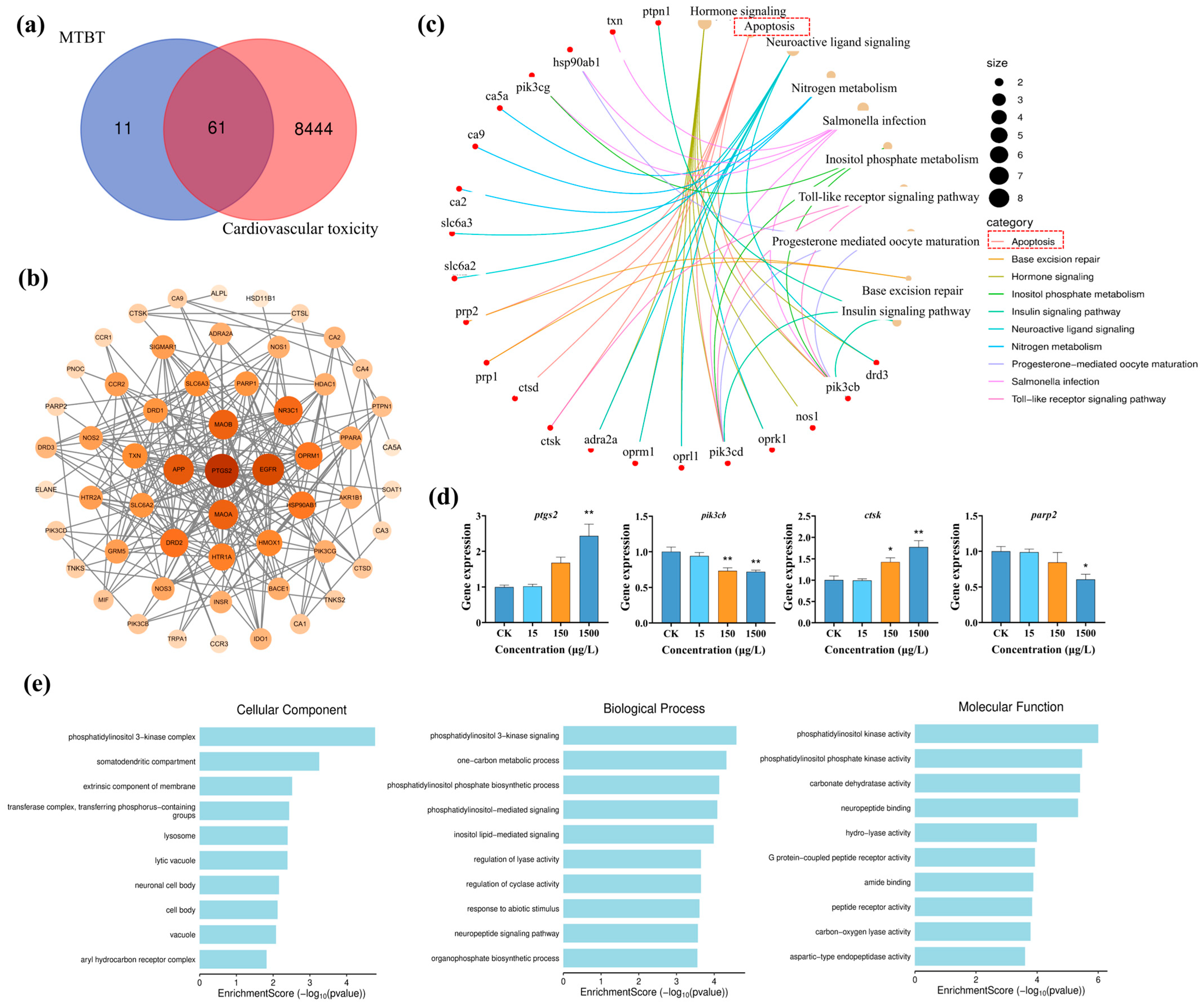 3.4. Potential Mechanism of Action of MTBT in Inducing Cardiovascular Toxicity in Zebrafish Larvae