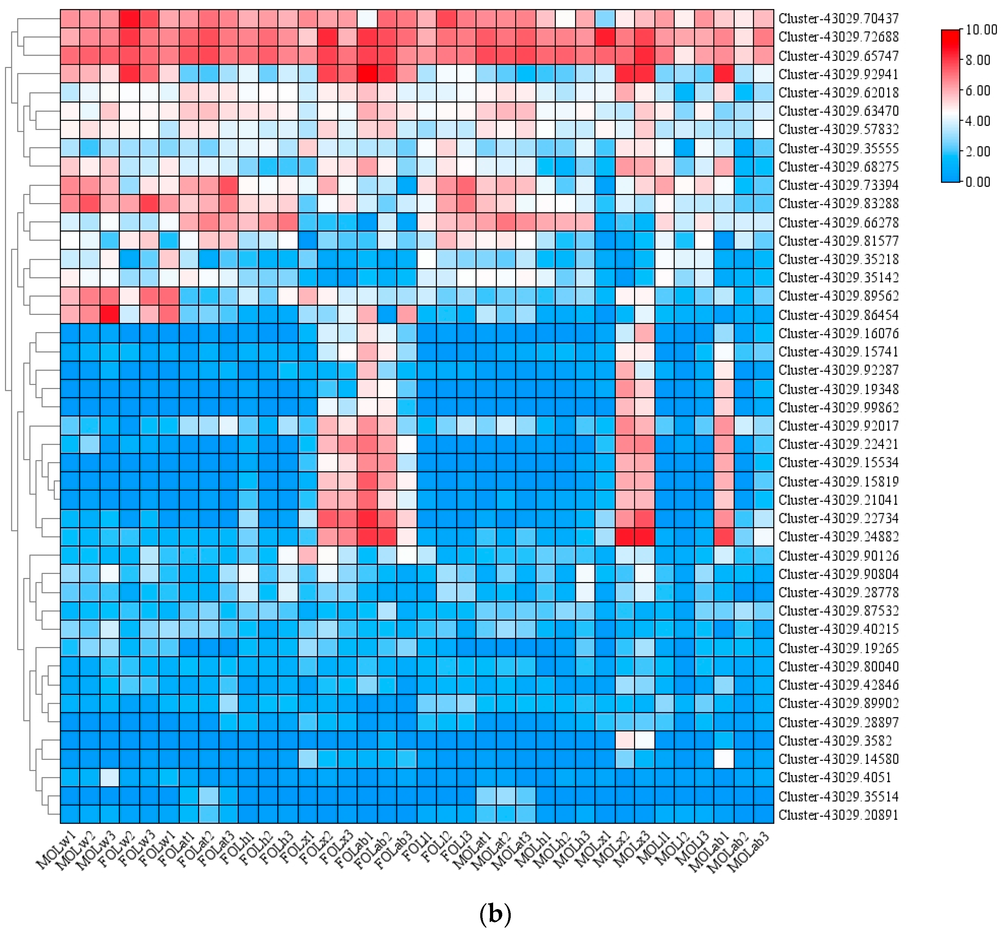 3.1. Identification and Expression Profile of the oleuCYP Sequence