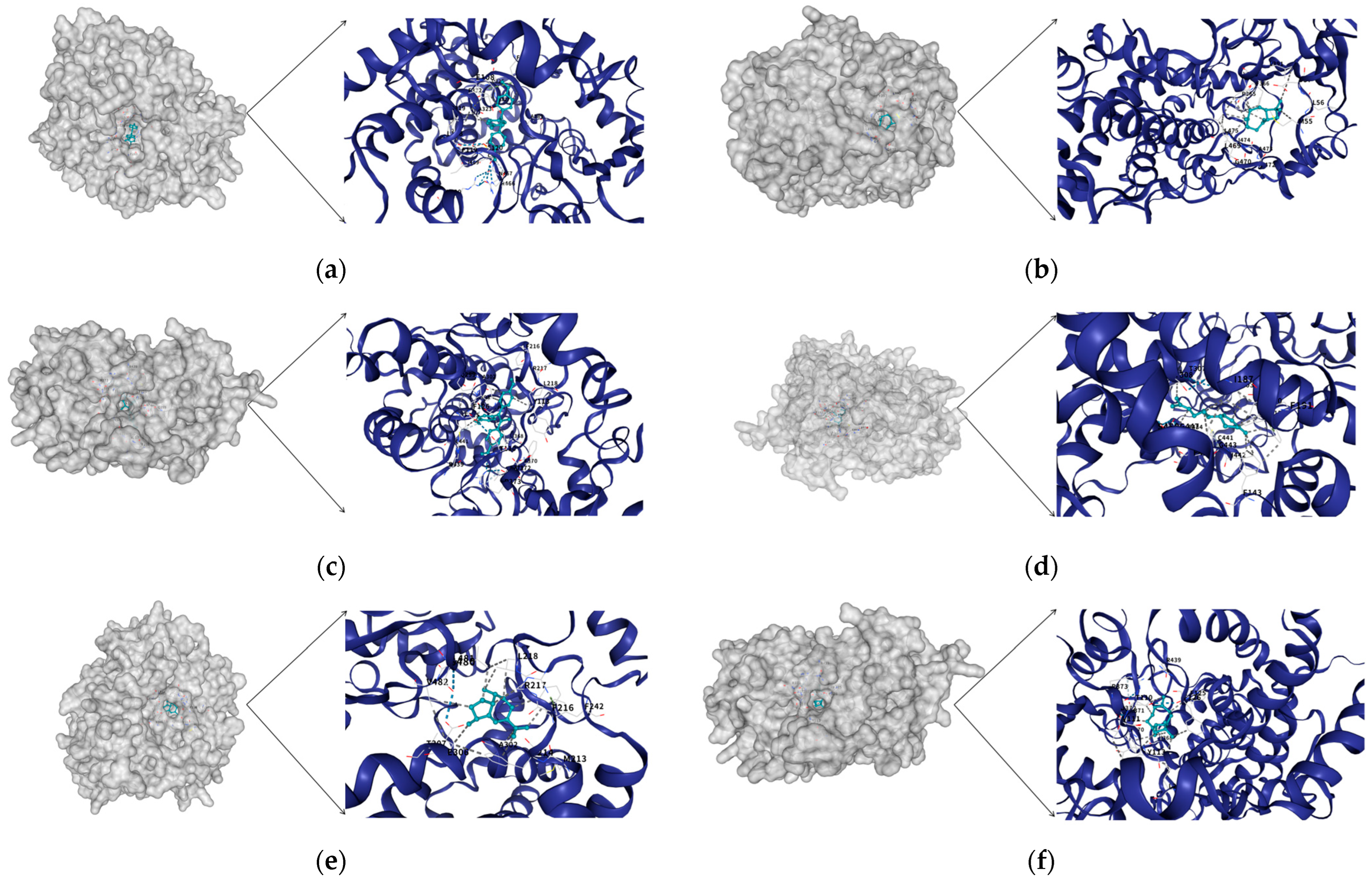 3.4. Strong Binding Affinity of Key CYP to Ligands