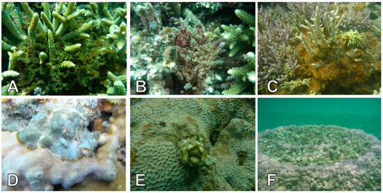 72. Diaz-Pulido, G.; McCook, L.J. Effects of live coral, epilithic algal communities and substrate type on algal recruitment. Coral Reefs 2004, 23, 225–233. [Google Scholar] [CrossRef]